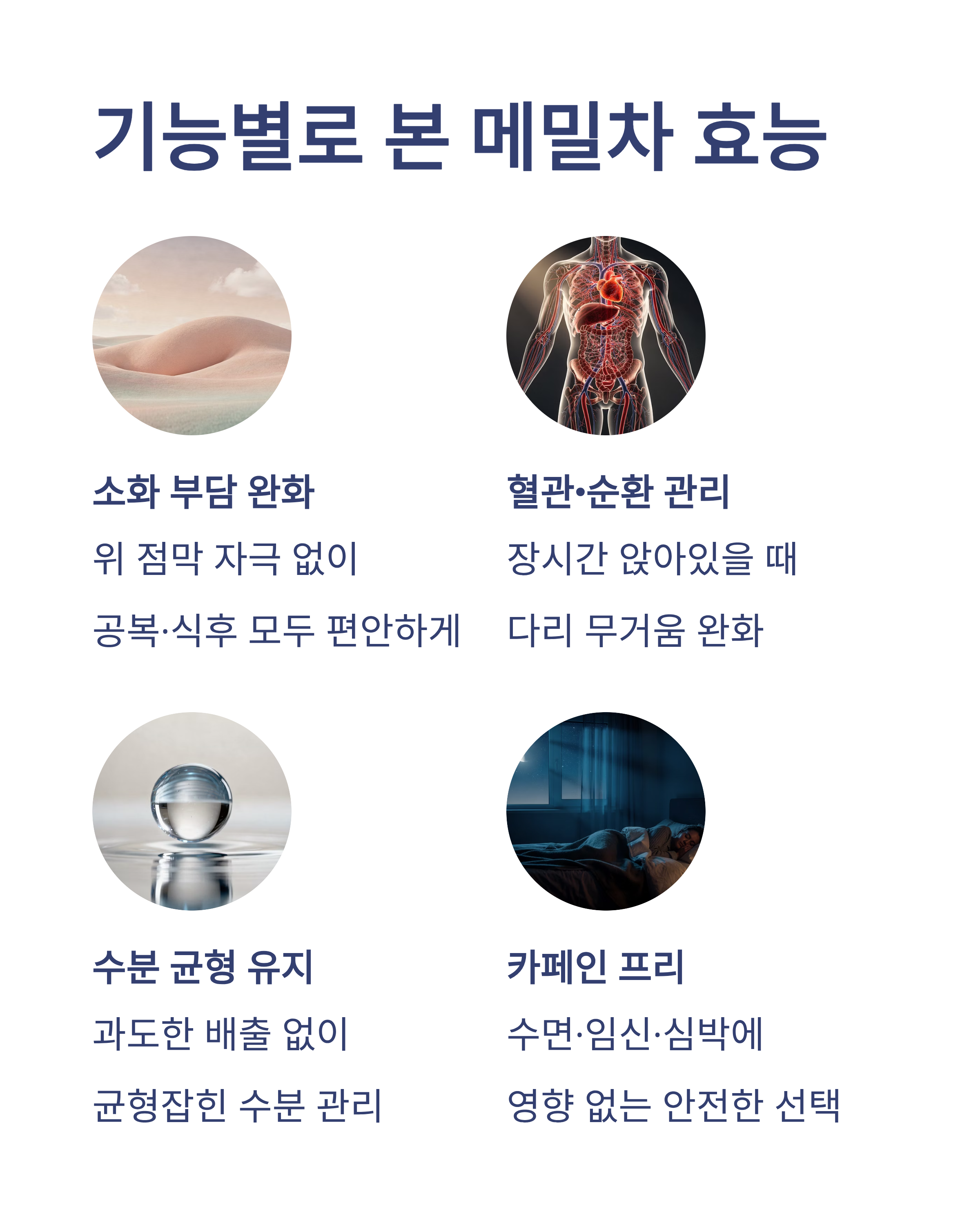3️⃣ 메밀차 효능을 ‘기능별 관점’으로 나누면