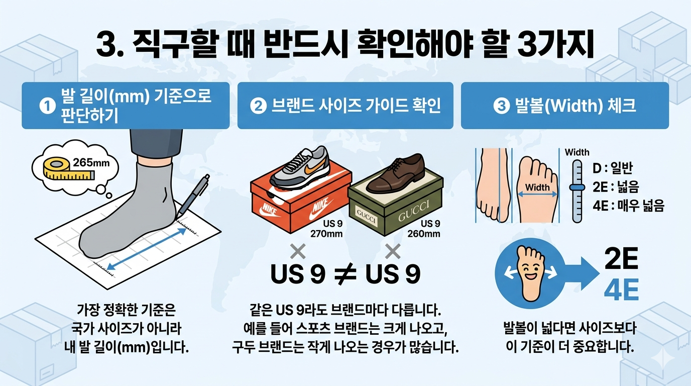신발 사이즈 조견표는 단순한 숫자 비교가 아니라