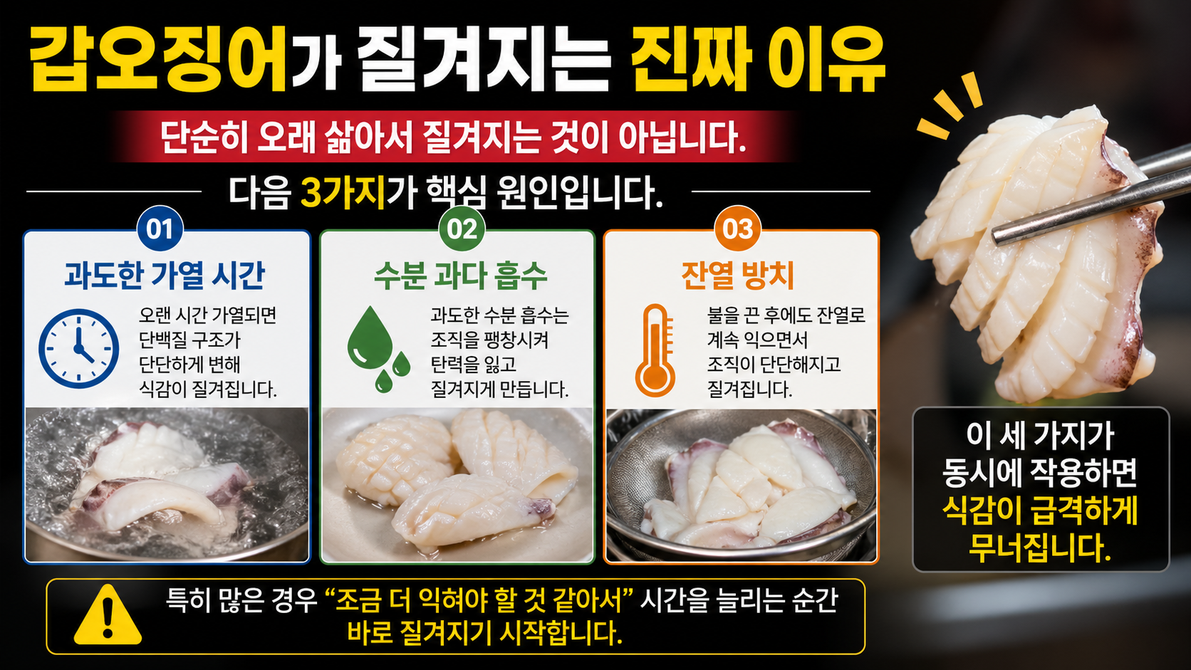 갑오징어는 오래 익혀서 질겨지는 것이 아니라