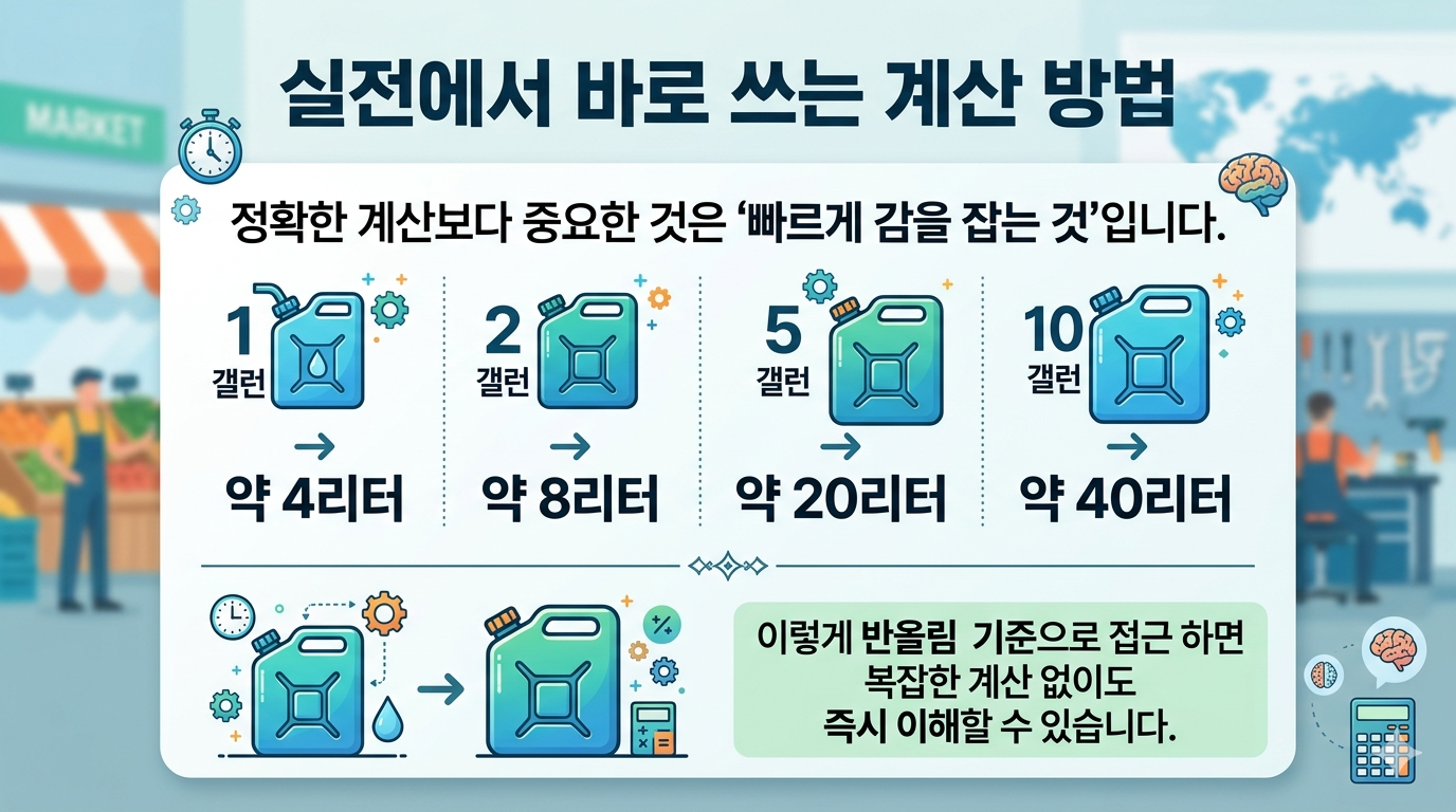 갤런을 리터로 바꿔서 이해하는 것입니다.
