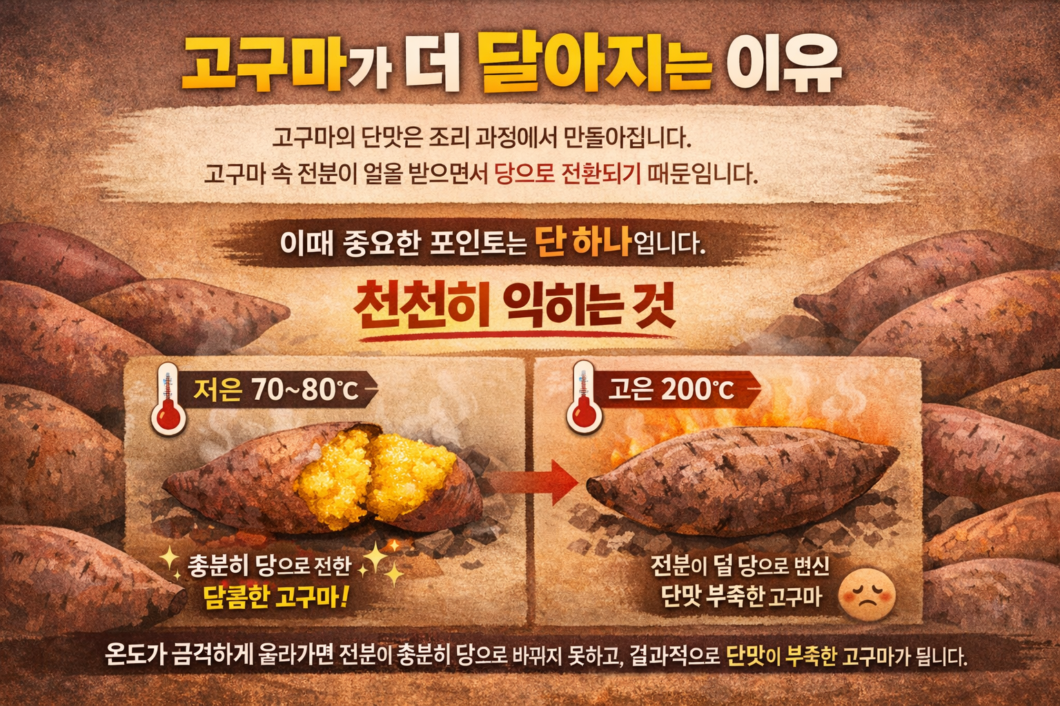 고구마 속 전분이 열을 받으면서 당으로 전환되기 때문입니다.