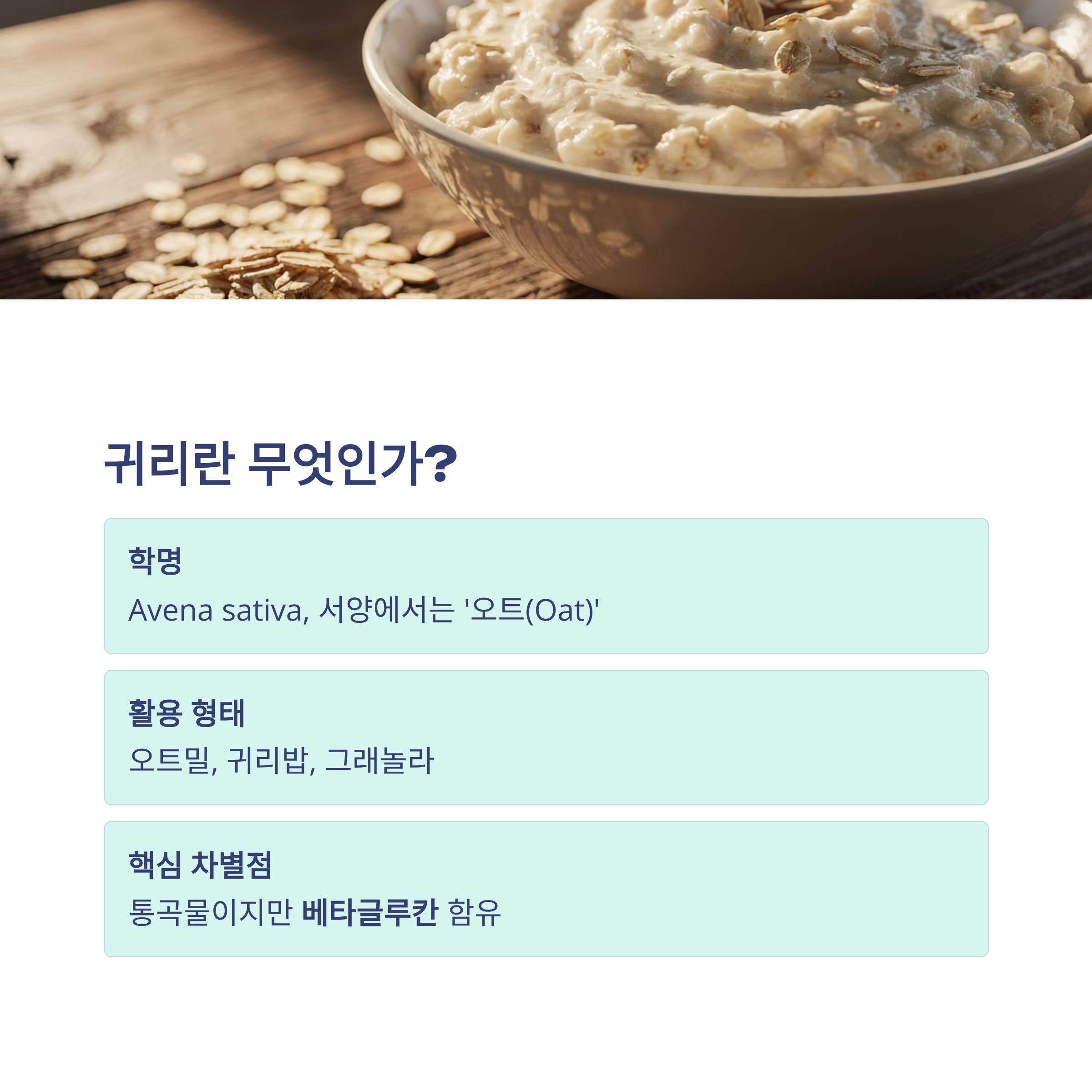 귀리 효능을 이해할 때는 “균형 잡힌 통곡물 식품”이라는 관점이 가장 정확합니다.