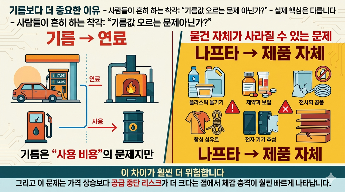 나프타는 “물건 자체가 사라질 수 있는 문제”입니다.