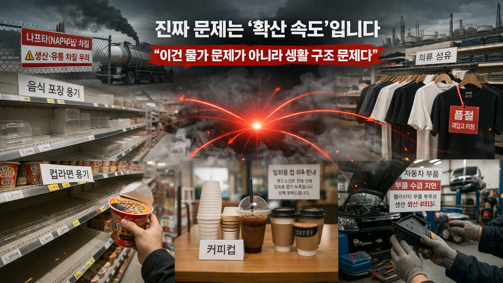 중동 전쟁 → 원유 수송 차단 → 나프타 공급 부족