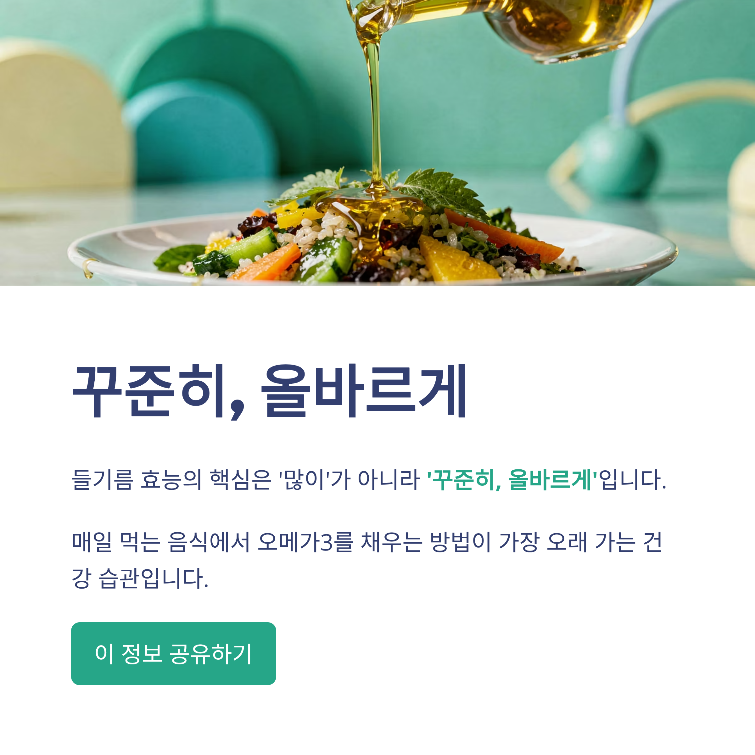 자극적인 보조제보다, 매일 먹는 음식에서 오메가3를 채우는 방법이