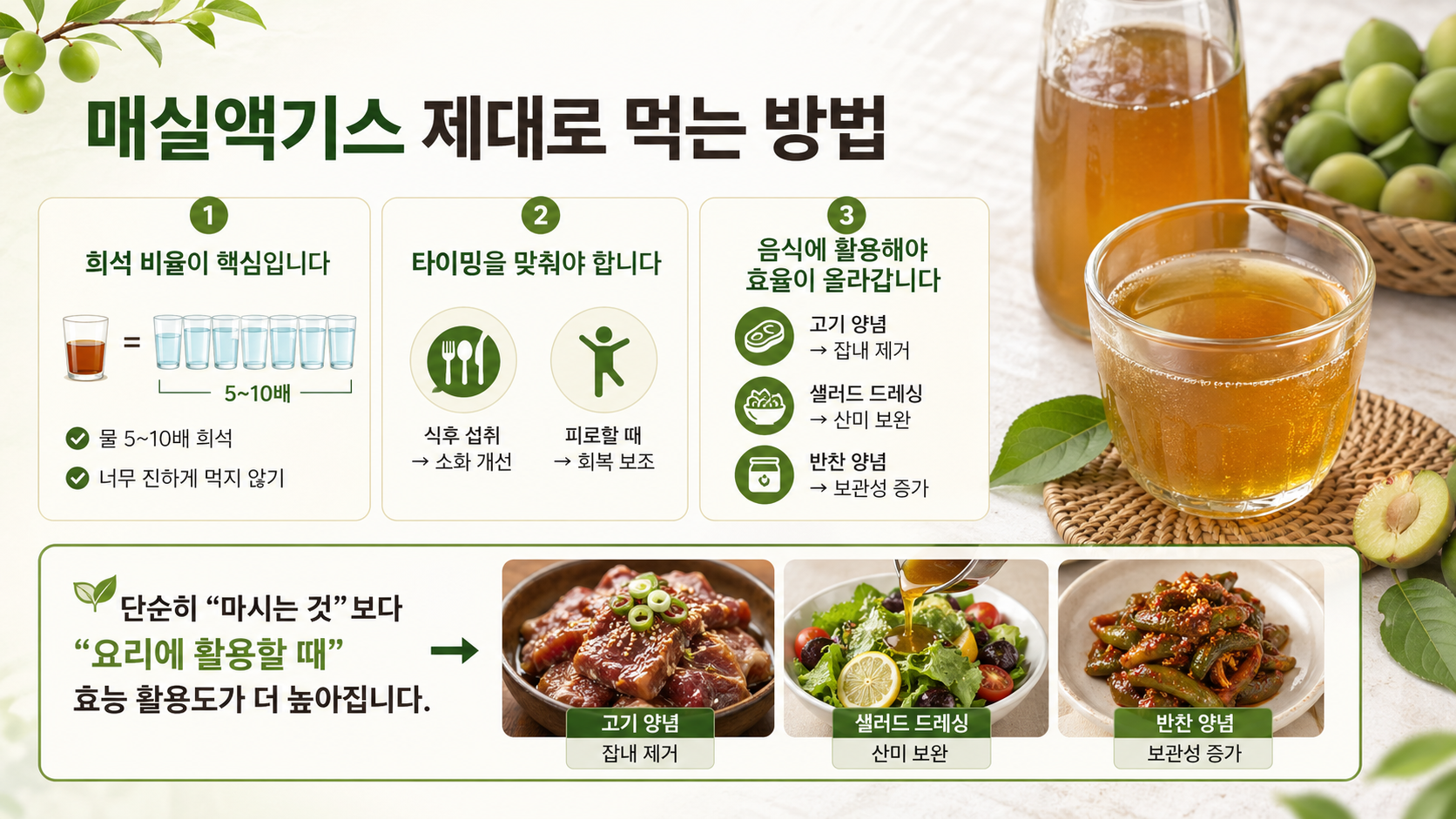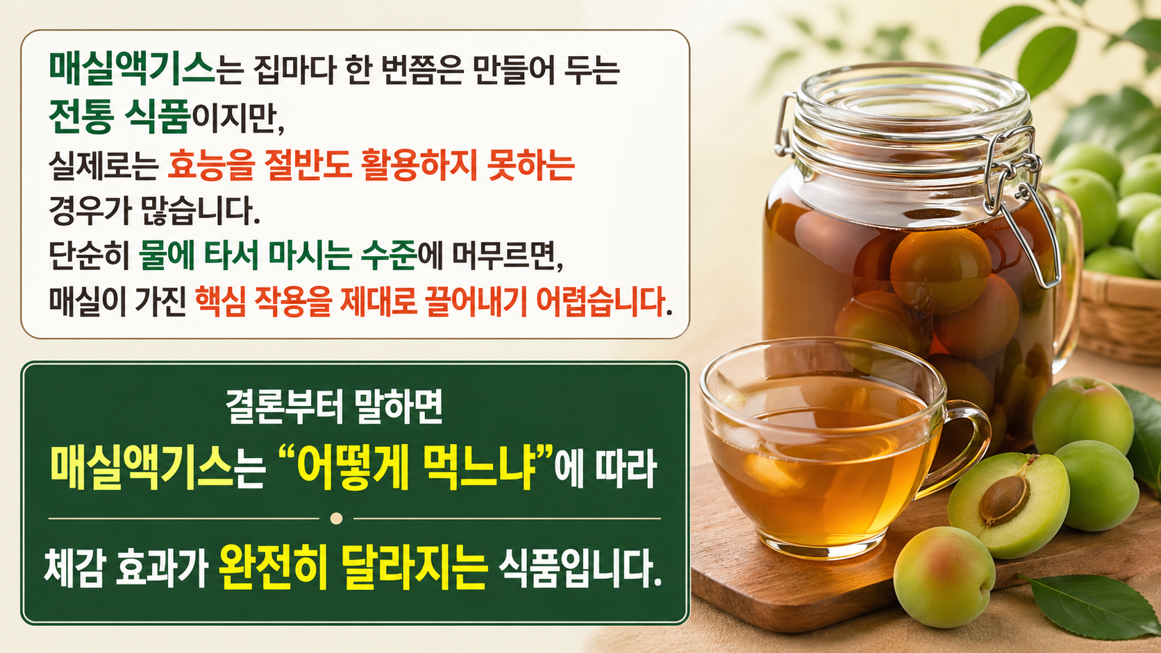 매실이 가진 핵심 작용을 제대로 끌어내기 어렵습니다.