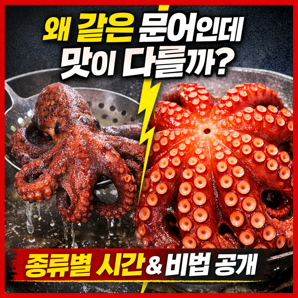 ✔ 문어 종류별 삶는 기준 (가장 중요한 포인트)