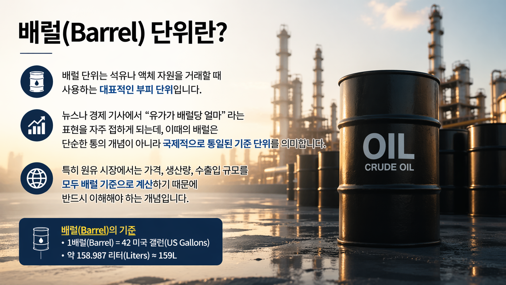 뉴스나 경제 기사에서 “유가가 배럴당 얼마”라는 표현을 자주 접하게 되는데,