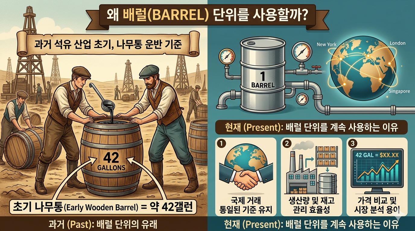 배럴 단위는 과거 석유 산업 초기에 만들어진 기준입니다.