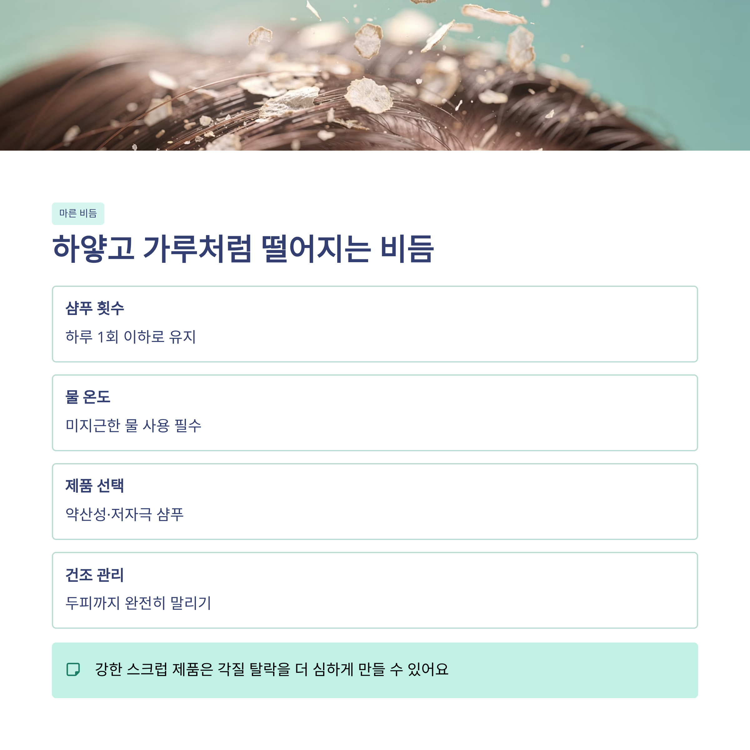 만 지켜도 비듬 재발 빈도는 확실히 줄어듭니다.