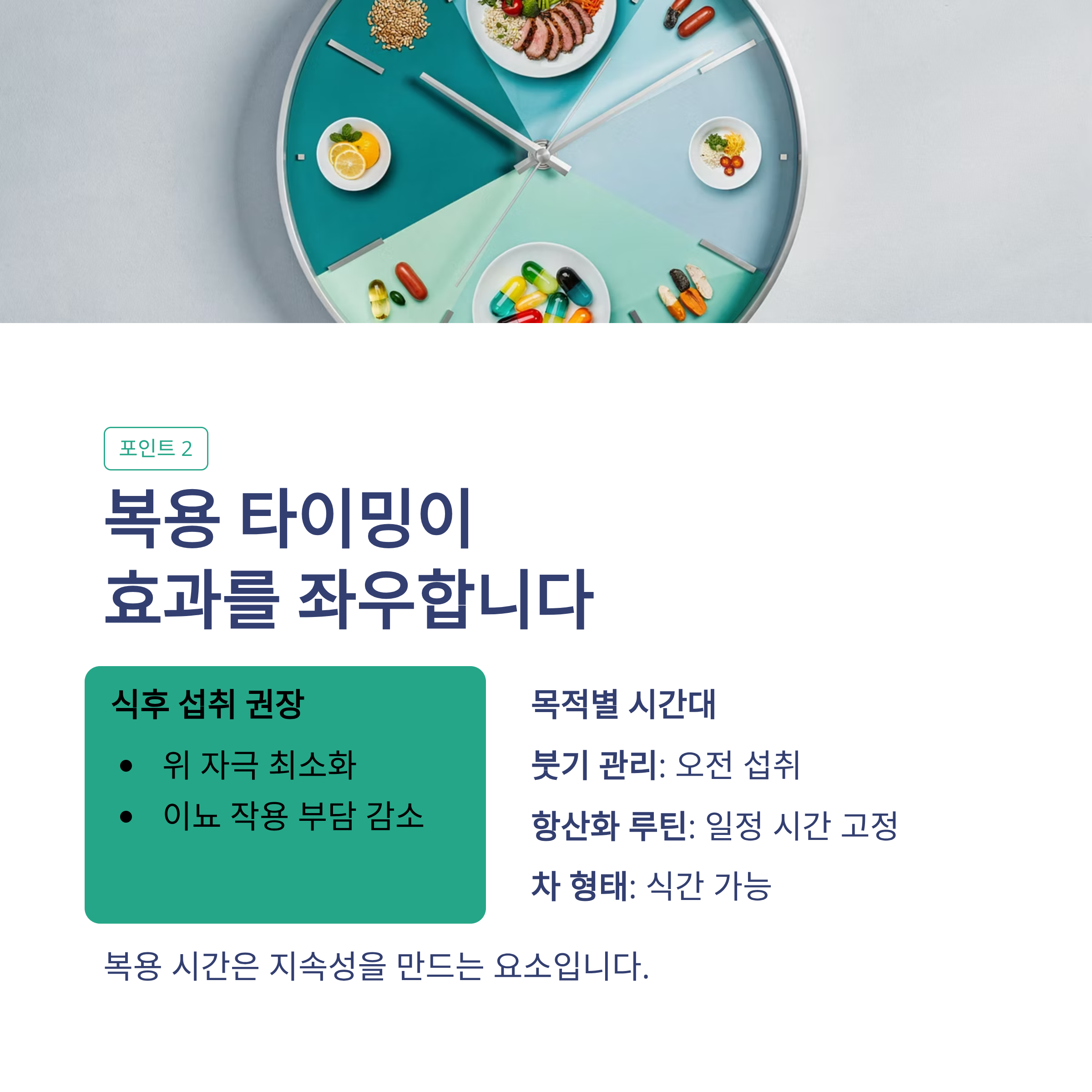 2️⃣ 공복 vs 식후, 복용 타이밍이 다르다