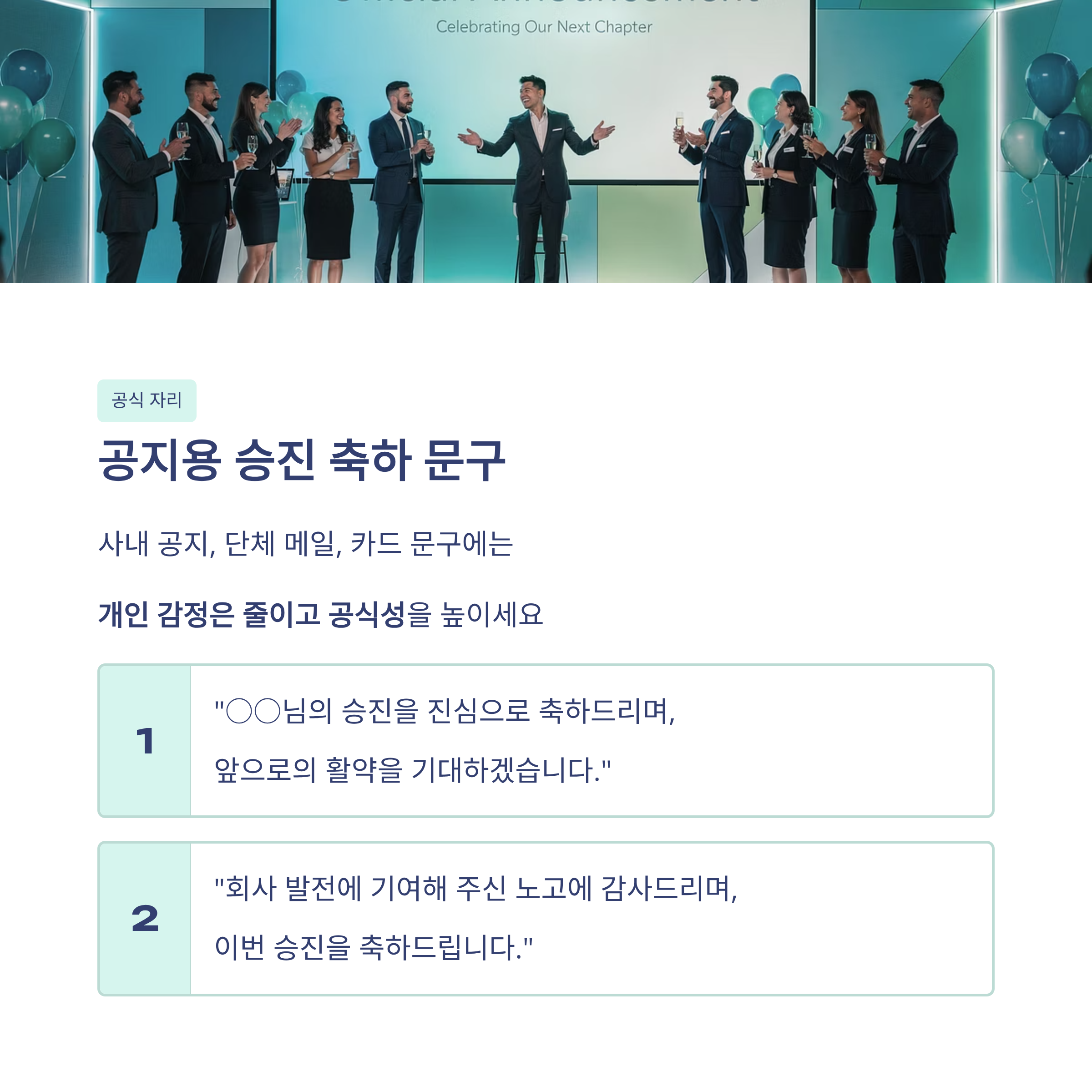 동료에게 보내는 승진 축하 문구 (가장 많이 쓰이는 상황)