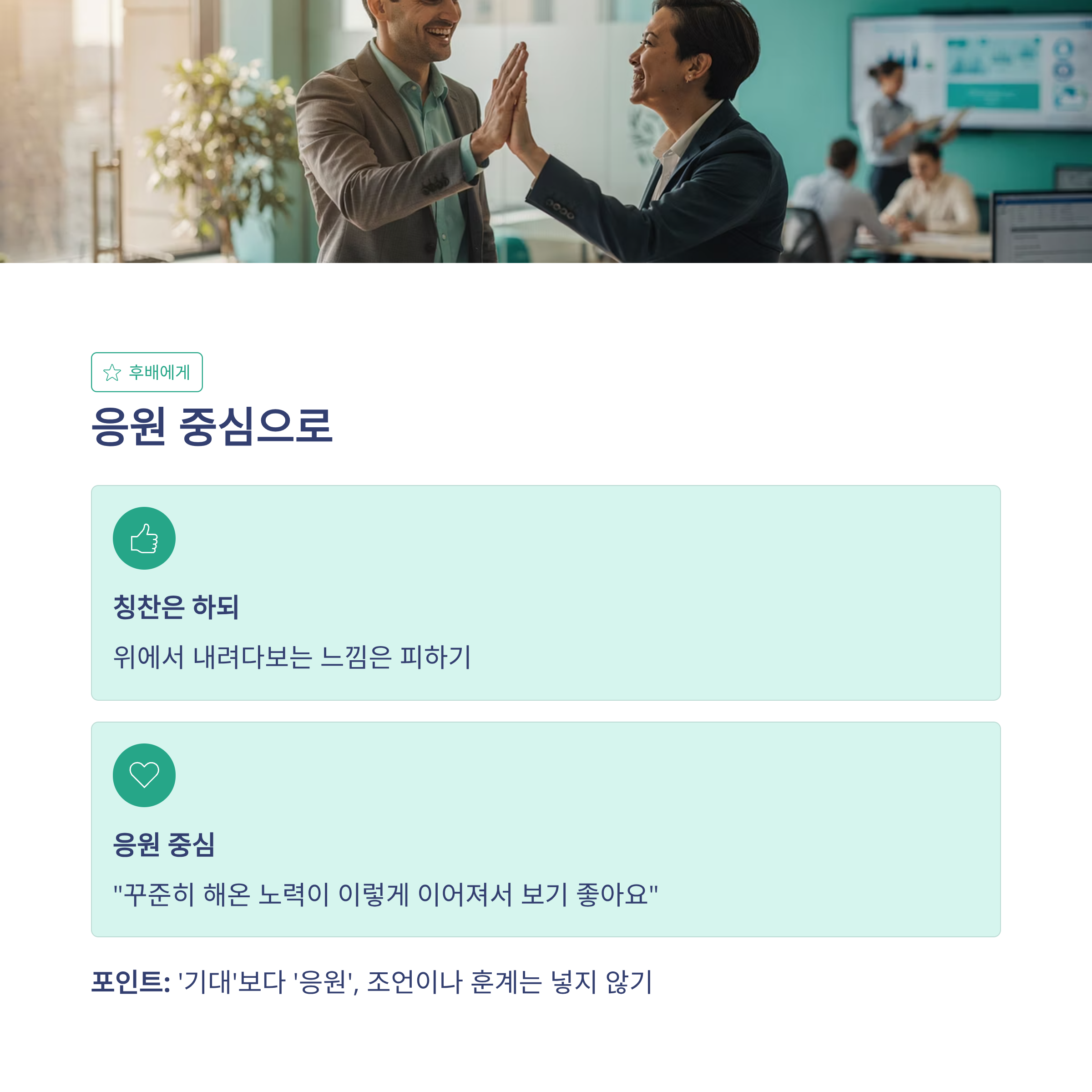 - 새로운 역할이 생기겠지만, 지금처럼만 하면 충분히 잘 해낼 거예요.