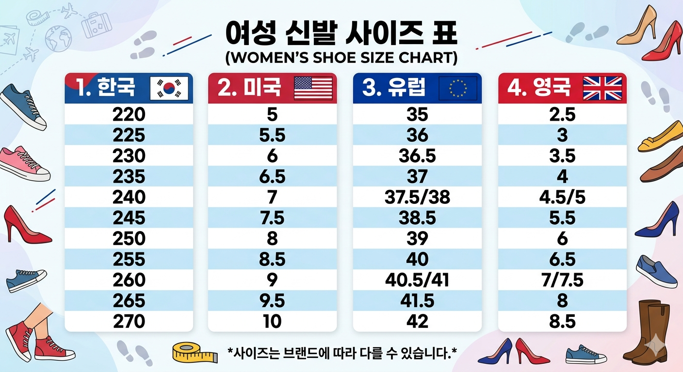 신발 사이즈 조견표는 단순한 숫자 비교가 아니라