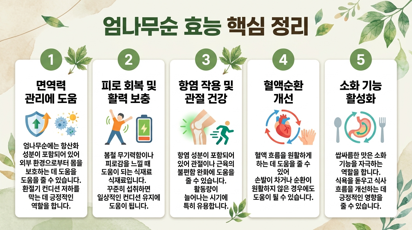 머위 효능과 섭취 방법을 정리했습니다. 항염, 기관지 건강, 혈액순환 개선 등 봄철 건강 관리에 도움 되는 머위의 핵심 정보를 확인해보세요.봄이 되면 자연스럽게 식탁에 오르는 식재료,바로