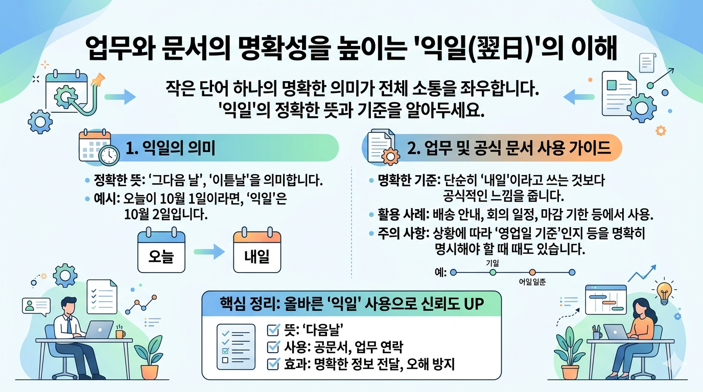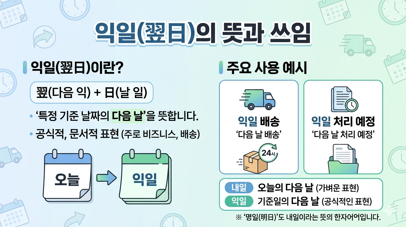 익일(翌日)은 ‘다음 날’을 의미하는 한자어입니다.