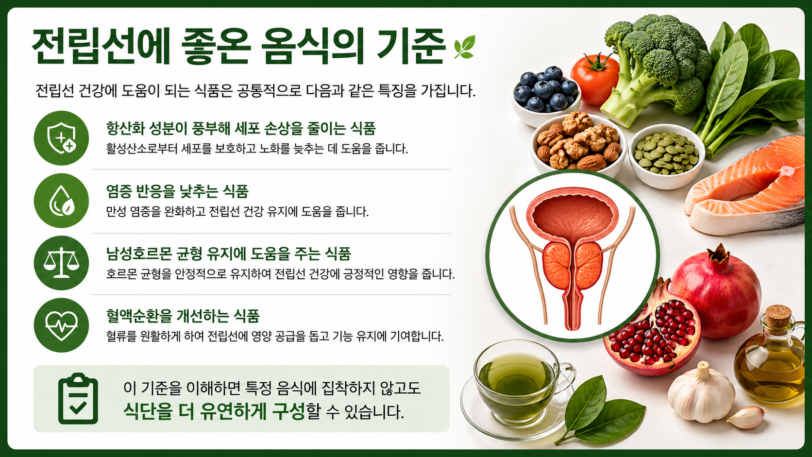 전립선 건강에 도움이 되는 식품은 공통적으로 다음과 같은 특징을 가집니다.