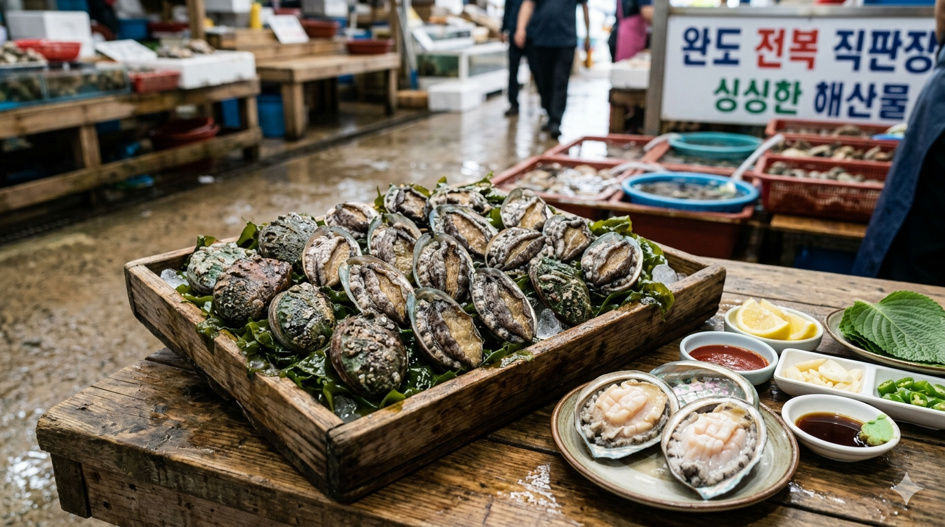 ✔ 초록색 내장 → 전복죽에 활용