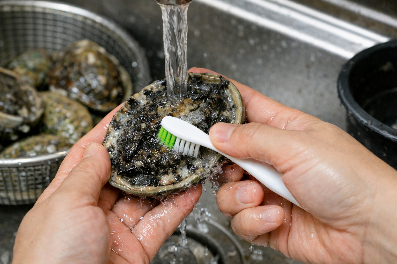 1️⃣ 전복 껍데기 분리