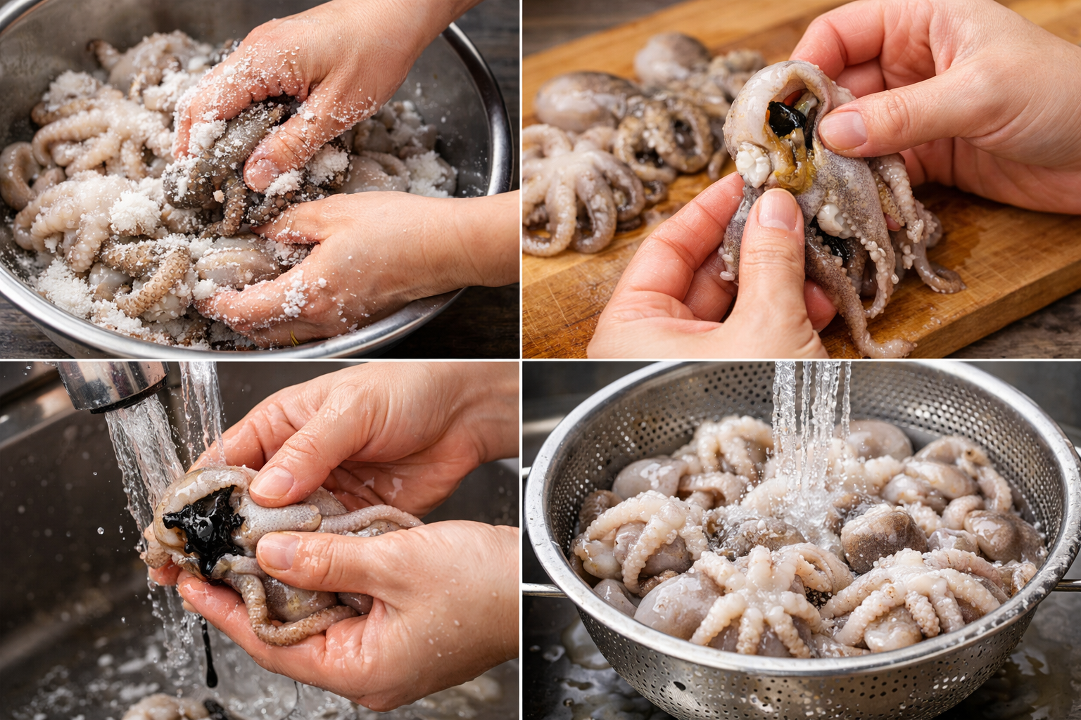 이 과정을 거치면 쭈꾸미 특유의 미끈거림과 불순물을 제거할 수 있습니다.