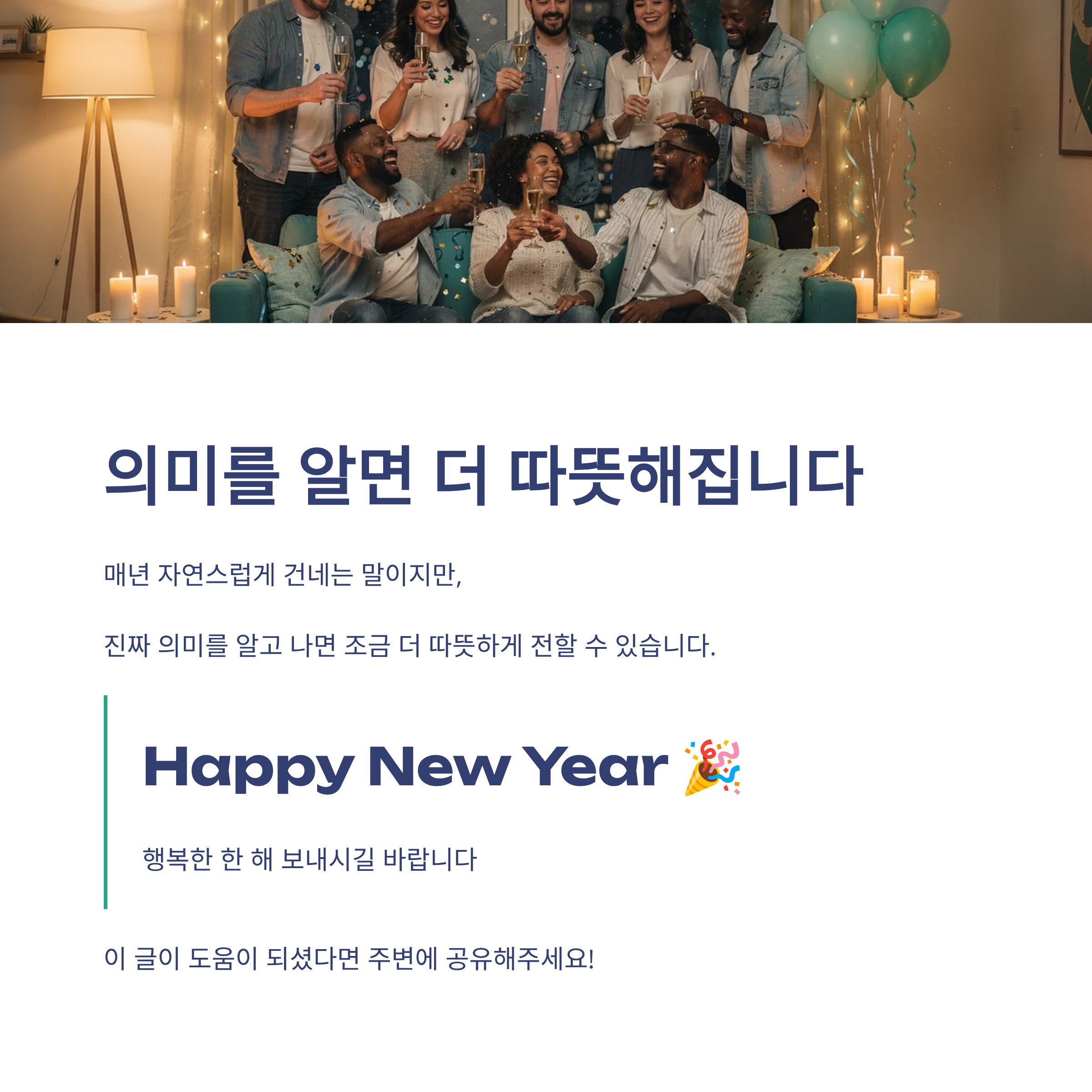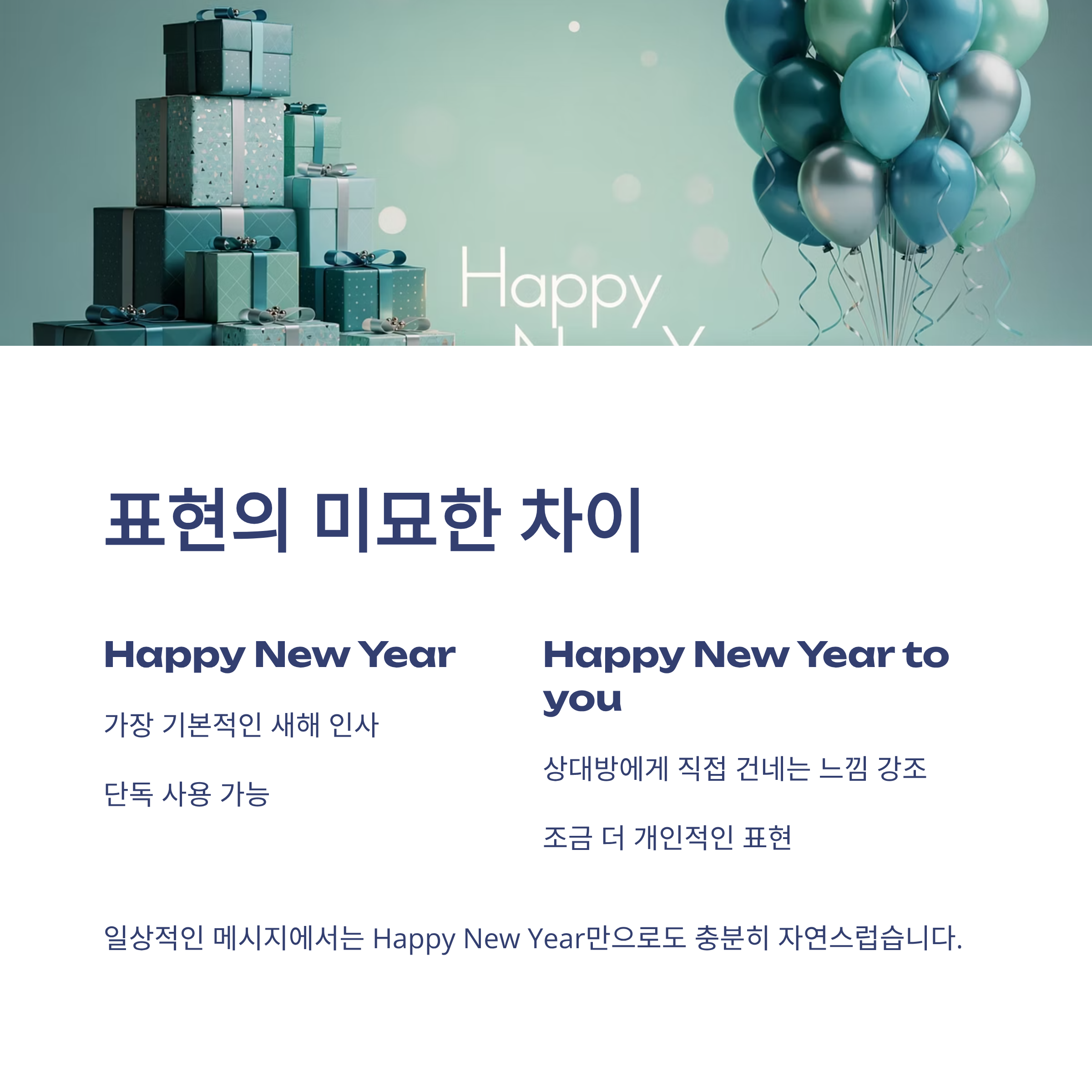 - 해피 뉴 이어 뜻: 행복한 새해가 되길 바라는 새해 인사