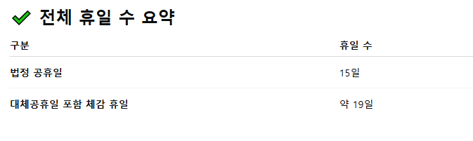 ✔ 대체공휴일 포함 체감 휴일